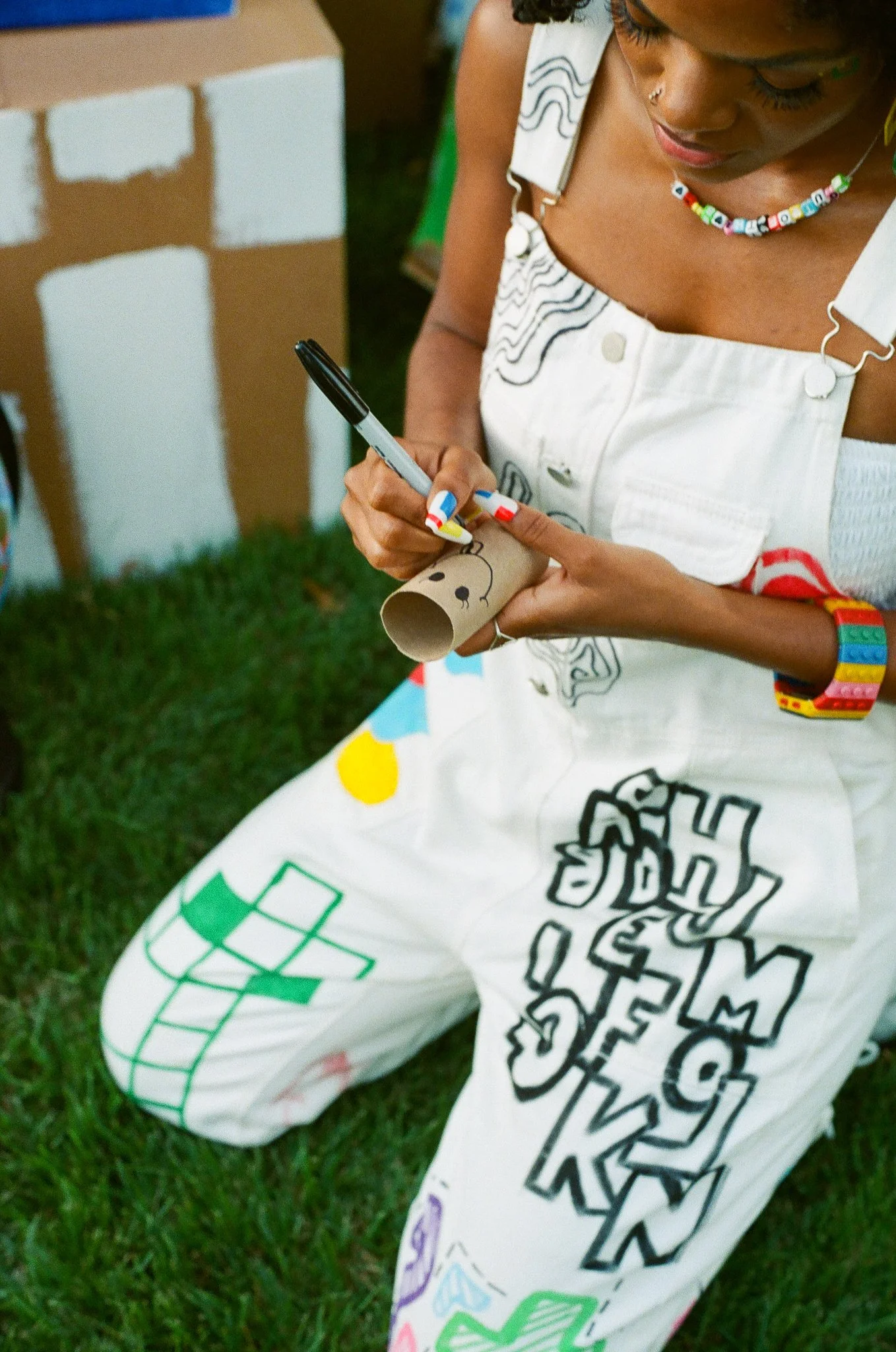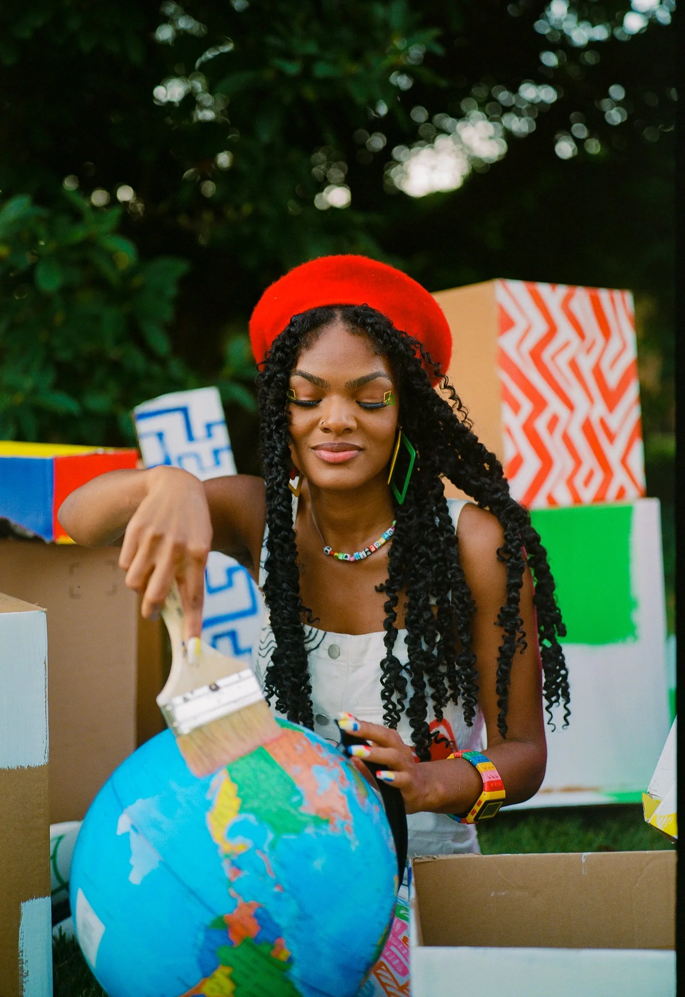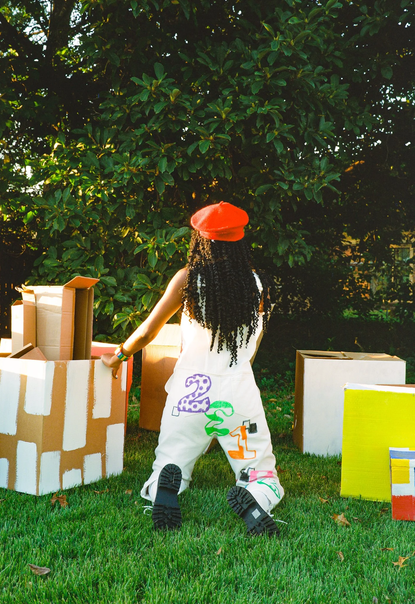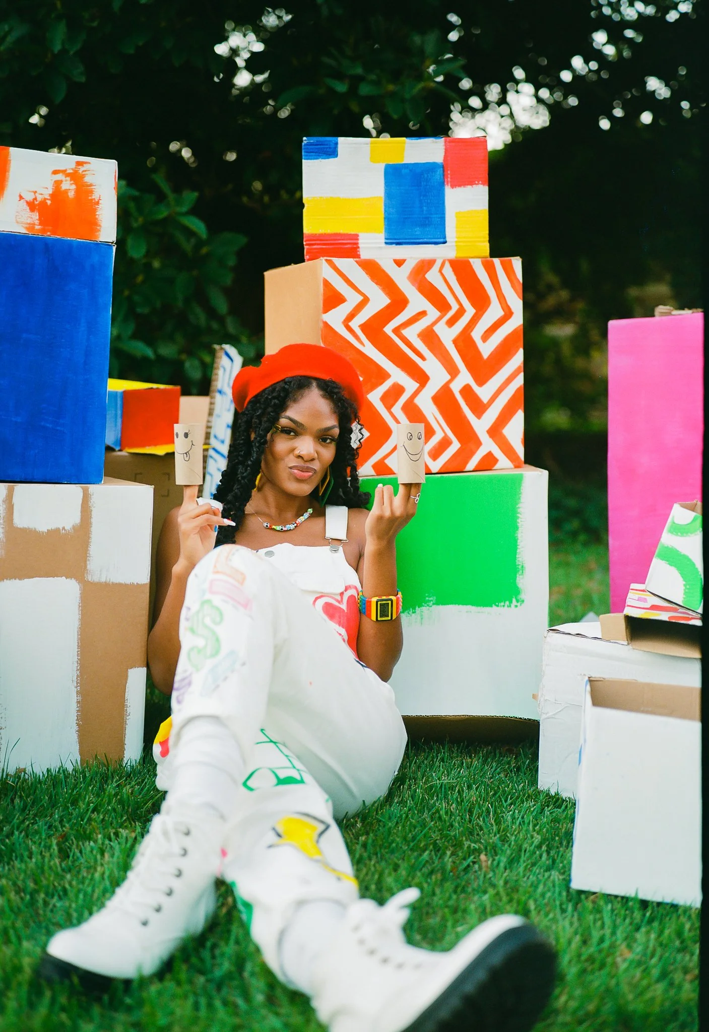 Created an artist photo story inspired by the 90’s show Out of the Box. Process included conceptualizing the designs, wardobe, hairstyle, makeup, accessories, and overall composition. Handpainted the boxes, overalls and graphic makeup look.